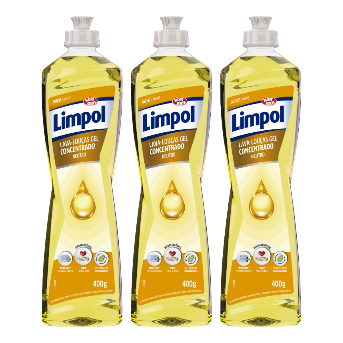 Kit 3 Detergente Gel Concentrado Neutro 400ml